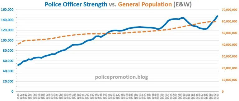 Mass immigration and demographic change really started in the 1990s, and wow did the number of police skyrocket, by almost 40,000!