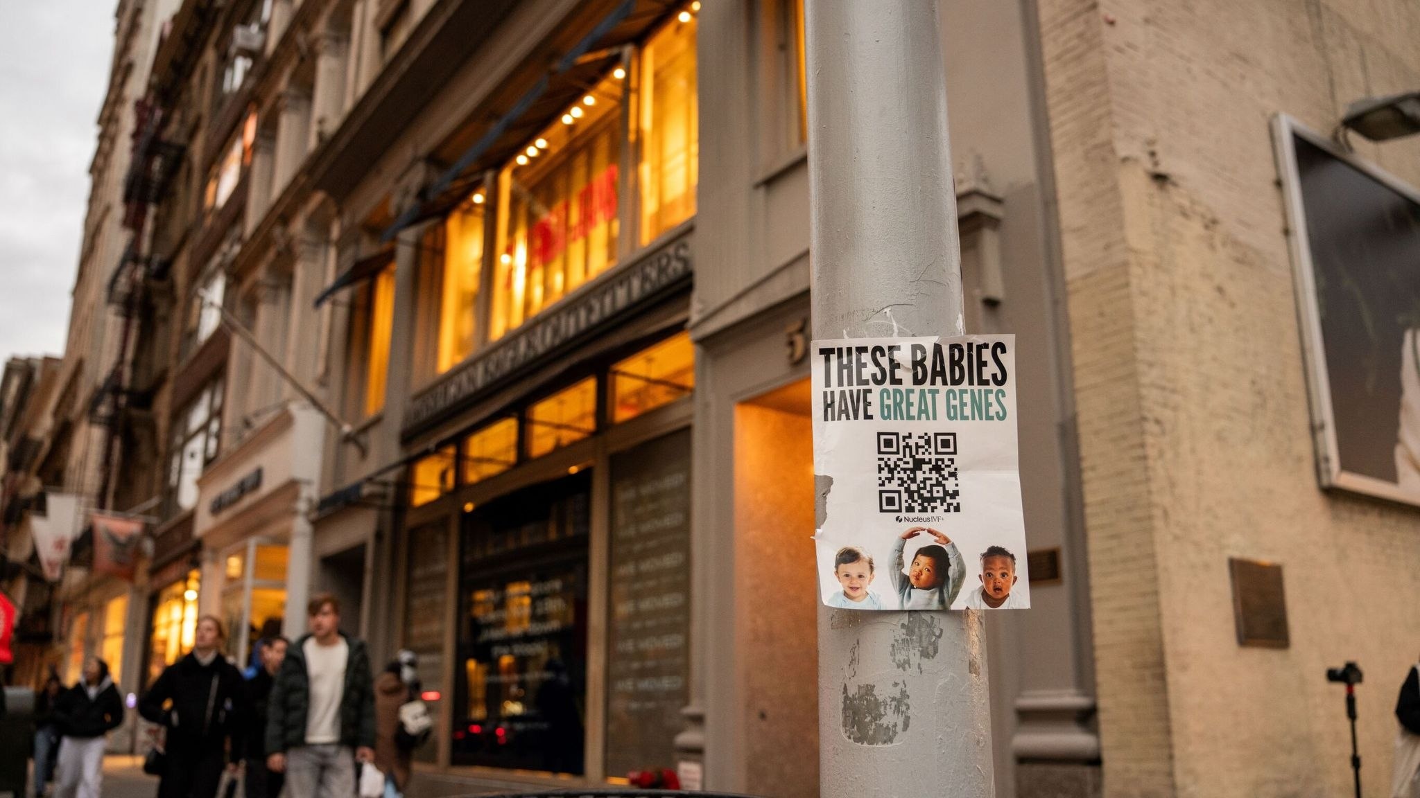 Posters have appeared on the New York subway offering would-be parents the opportunity to "genetically optimise" their future baby.