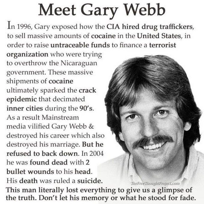 21 years ago today Gary Webb was suicided for exposing how the CIA sells drugs on America's streets to fund Ronald Regan's Contras.