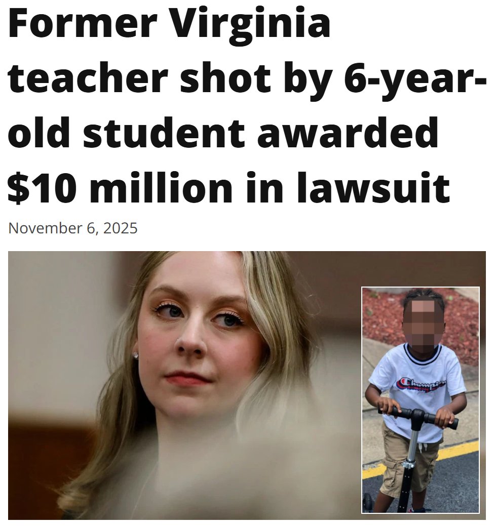 The teacher just won a $10 million judgement against the school's vice principal, Ebony Parker, a Black woman who knew for hours that the boy had the gun in his backpack and had vowed to kill people, having been told so by numerous teachers, yet did absolutely nothing but allow it to happen.
