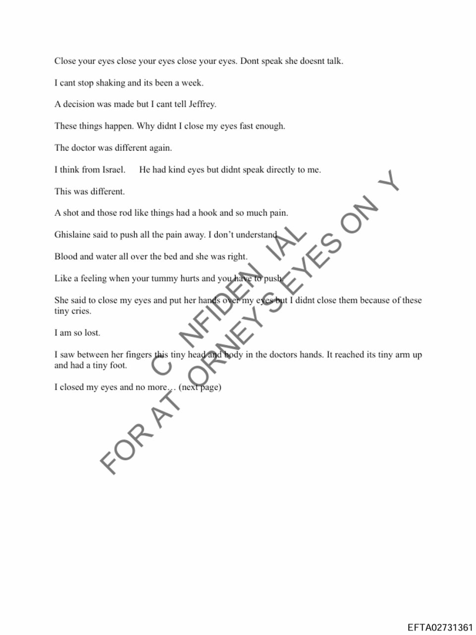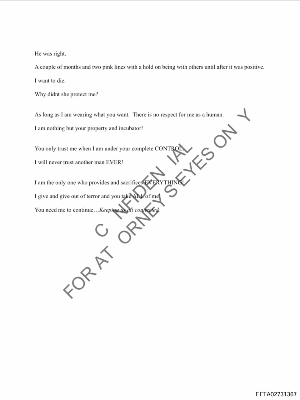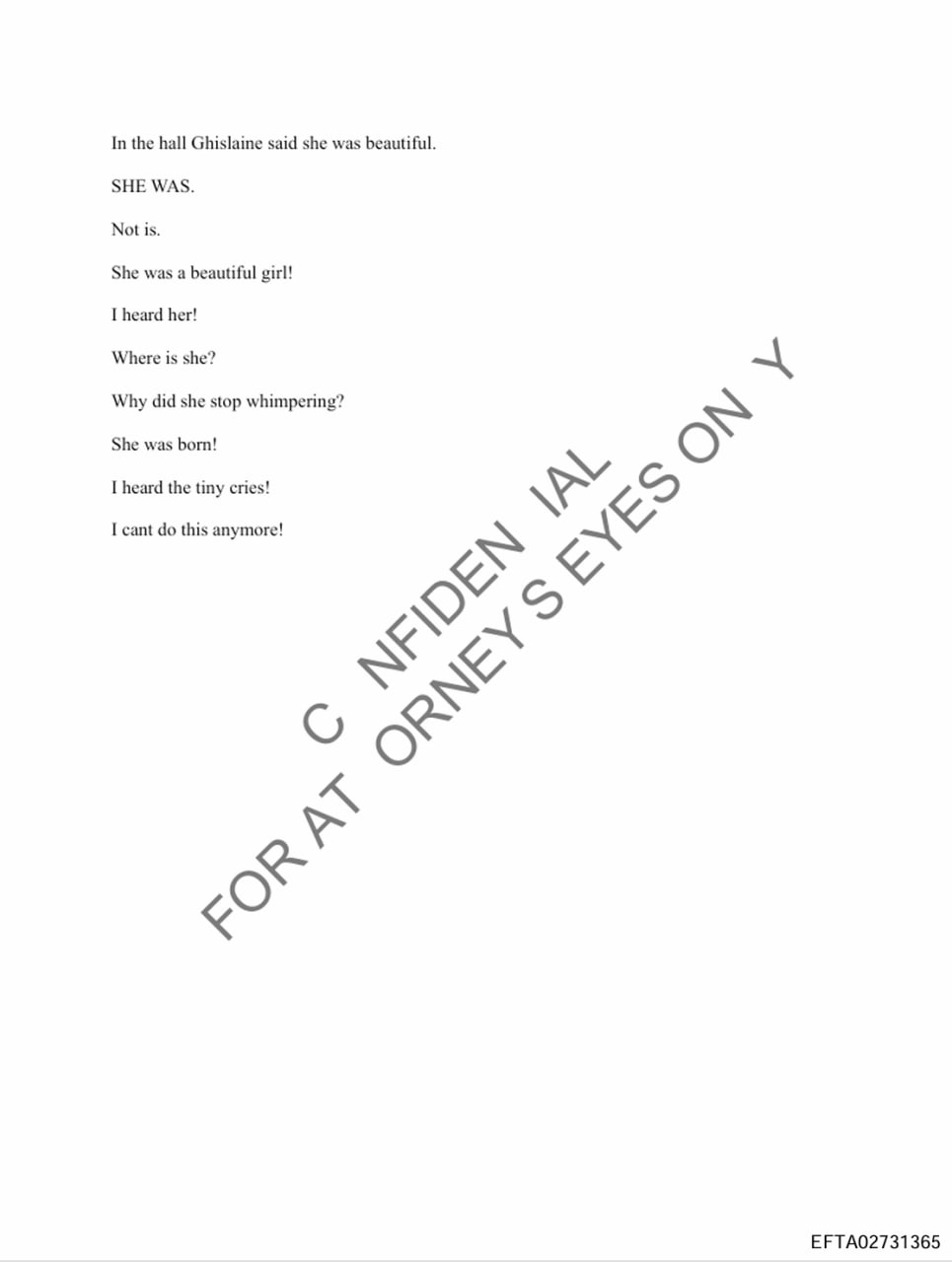 In this diary, victim describes herself as "incubator" and writes about giving birth multiple times and how it was Epstein's and Maxwell's baby she birthed.